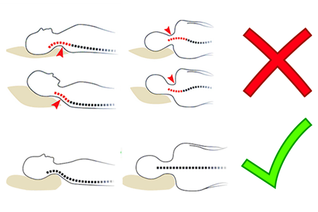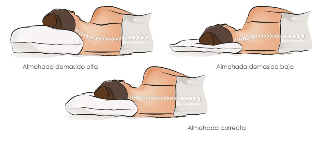 - Si la almohada es muy baja: El cuello se extiende hacia atrás (hiperextensión), comprimiendo las facetas articulares de las vértebras.